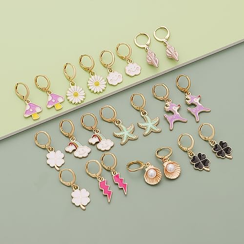 10/20 Pairs Gold Hoop Dangle Earrings For Girls Gold Hoop Earrings With Charms 14k Gold Huggie Hoop Earrings 7