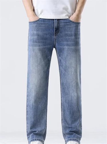 HOT ! Mnjyihy Men Loose Straight Leg Jeans Comfort Thin Stretch Cotton Blend Stretch Slim Fit Work Denim Pants