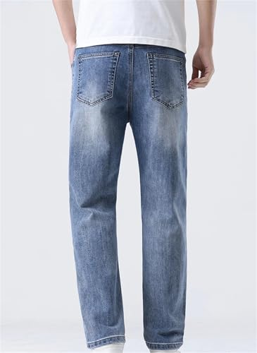 Mnjyihy Men Loose Straight Leg Jeans Comfort Thin Stretch Cotton Blend Stretch Slim Fit Work Denim Pants 7