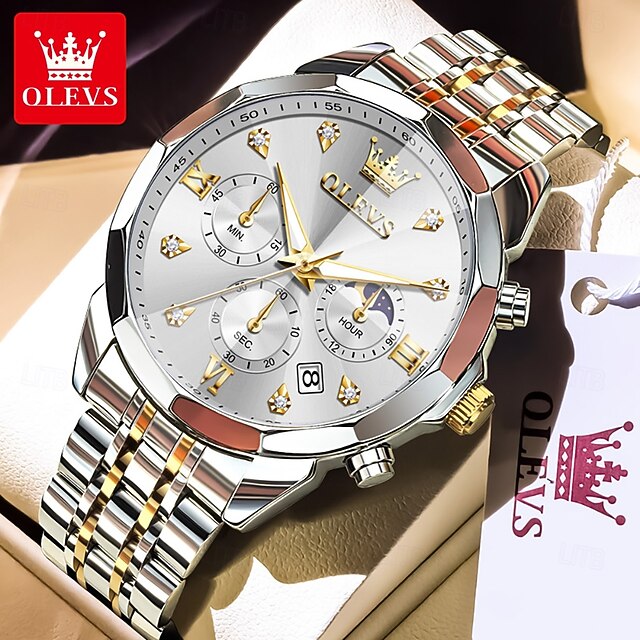 $36.99 - OLEVS 3670 Mens Watch Multifunctional Chronograph Quartz Watch Waterproof Luminous Moon Phase Watch 2025. Shop for cheap Quartz Watches online? Buy at lightinthebox.com on sale today!