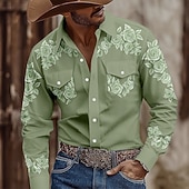 More information about Men's Floral Print Flowers Shirt Western Shirt Cowboy Shirt Long Sleeve Vintage Retro Outdoor Casual WorkWear Spring Fall Turndown Front Two Pockets Button Up Shirts Pink Blue Green Khaki