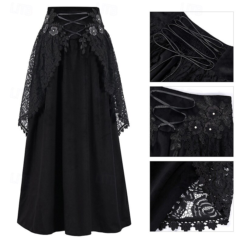 More information about Retro Vintage Punk & Gothic Medieval Skirt Cosplay Costume Maxi Skirt Lace Solid Color Fancy Dress Women's Celtic Pirate Fantasy Masquerade Carnival Casual Daily Adults' Skirt