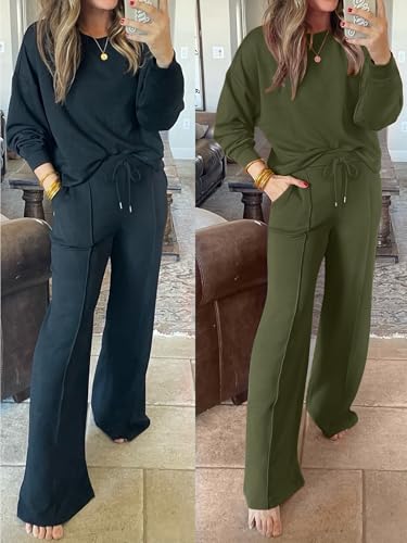- Features - Women's 2 piece outfits lounge sweatsuits, casual, long sleeve, crew neck, drawstring, supple, cozy.This women's matching tracksuits outstanding for daily wear, work, office, vacation.