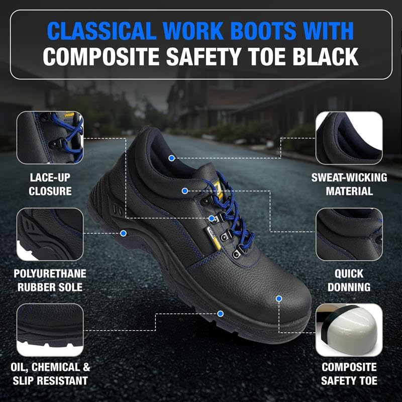 HOT ! Half-Boots Unionshoes - Composite Safety Toe Work Boots for Mens - Lightweight and Durable - Slip, Oil & Chemical Resistant Outsoles - Ideal for Warehouse and Construction Work