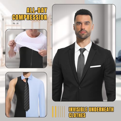 Mens Compression Zipper Vest,Gynecomastia Tummy Control Shirt,Back Support Shapewear Slimming Undershirt 6