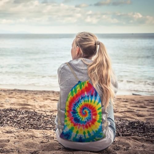 Drawstring Backpack Gym Bag Tie Dye Rainbow Cinch Sackpack Waterproof Beach Bag for Women Men 1