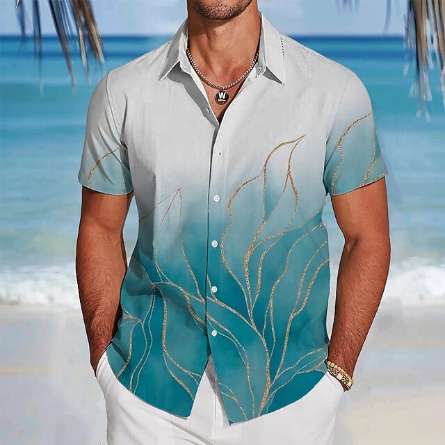 Men's Leaf Gradient Color Tropical Plants Shirt Summer Hawaiian Shirt Button Up Shirt Short Sleeve Hawaiian Resort Vacation Holiday Beach Wear Summer Spring Turndown 3D Print Collared Shirts Blue 7