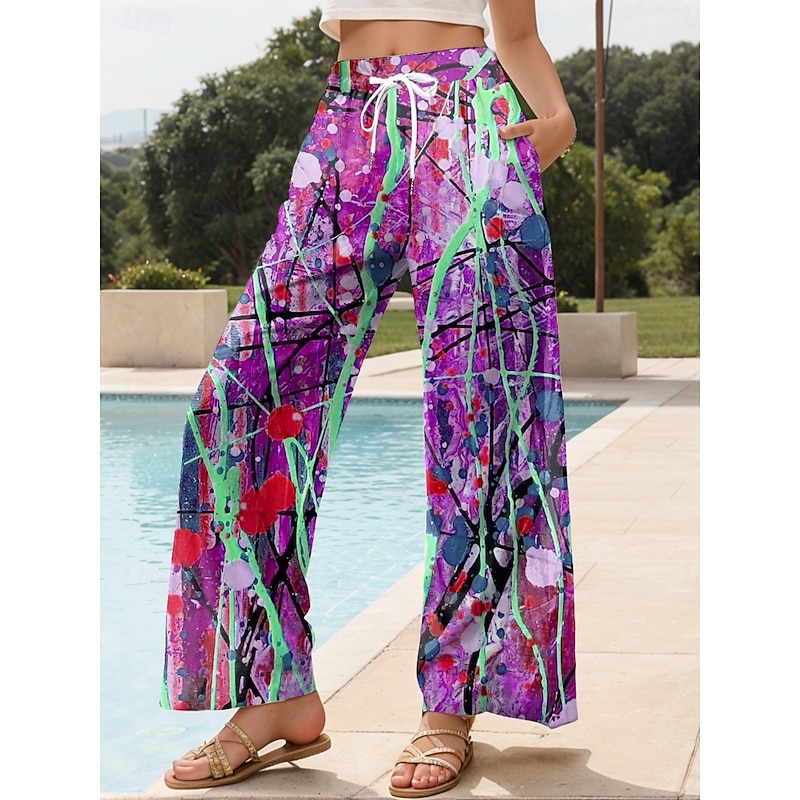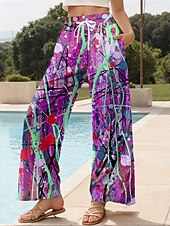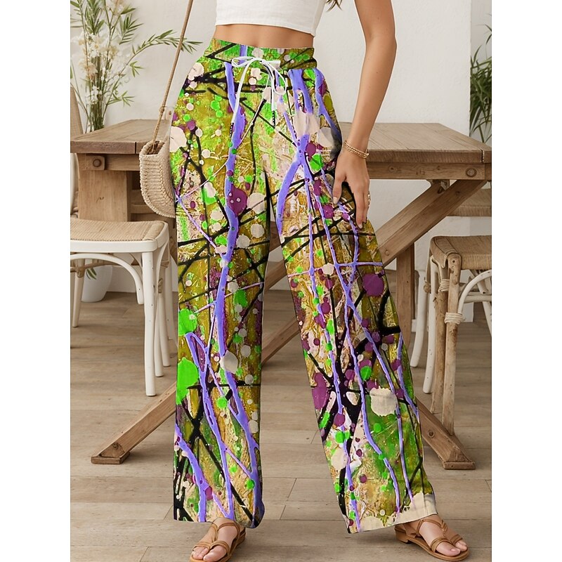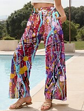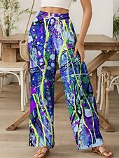 More information about Women's Wide Leg Chinos Baggy Pants Vacation Vintage Fashion Full Length High Waist Graphic Abstract Printing Soft Breathable Micro-elastic Formal Outdoor Vacation carmine Robin's Egg Blue Yellow
