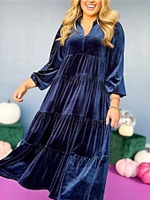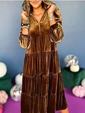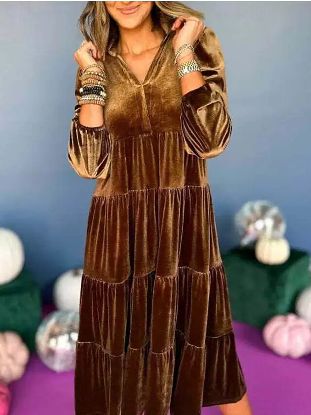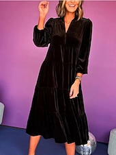 More information about Women's Midi Dress Velvet Dress Cocktail Dress Elegant Fashion Modern Outdoor Party Party Evening Wear Regular Fit Plain Long Sleeve V Neck Black Yellow Wine Blue Spring Autumn