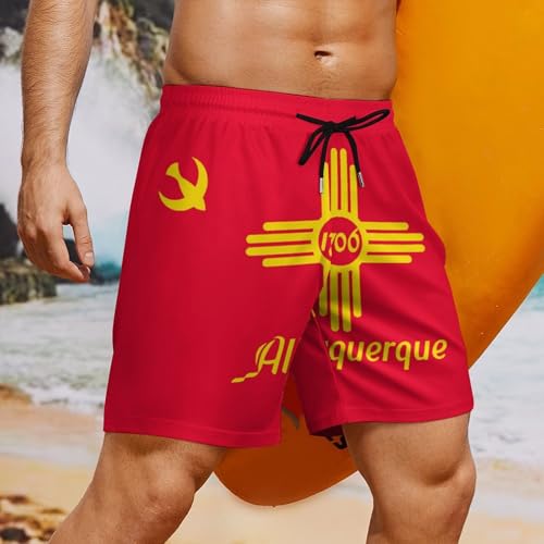 HOT ! Albuquerque in New Mexico U.S. Flag Men's Swim Trunks with Compression Liner Summer Bathing Suit Beach Shorts with Pockets