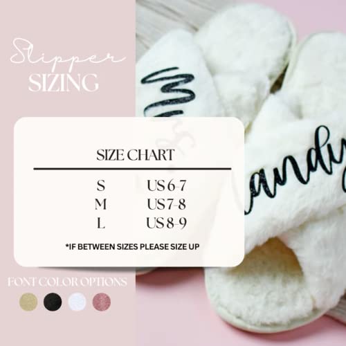 HOT ! Personalized Fluffy Slippers, Bridal Slipper, Birthday Gifts for Her (L, Blush)