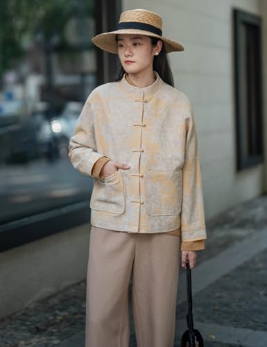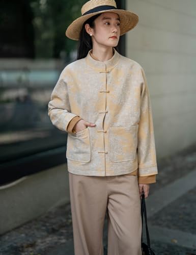 Ystylee Women's Lightweight Fall Jacket Jacquard Mandarin Collar Chinese Frog Button Tang Suit Coat Tops 7