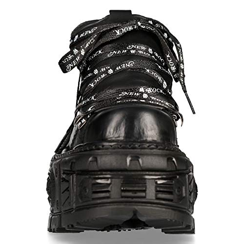 New Rock M-TANK120N Women's Black 100% Leather Goth Platform Punk Metal Ankle Boots 4