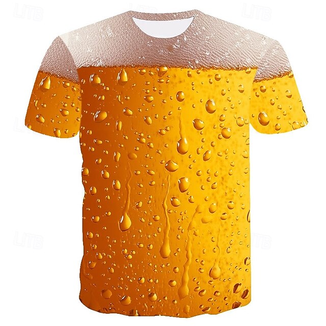 Men's Color Block 3D Beer Shirt T Shirt Short Sleeve T shirt Round Neck Shirt Basic Going out Weekend Oktoberfest Light Yellow Black White Clothing Apparel Plus Size S M L XL 2XL 3XL S 13