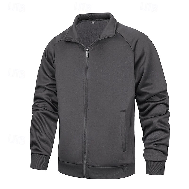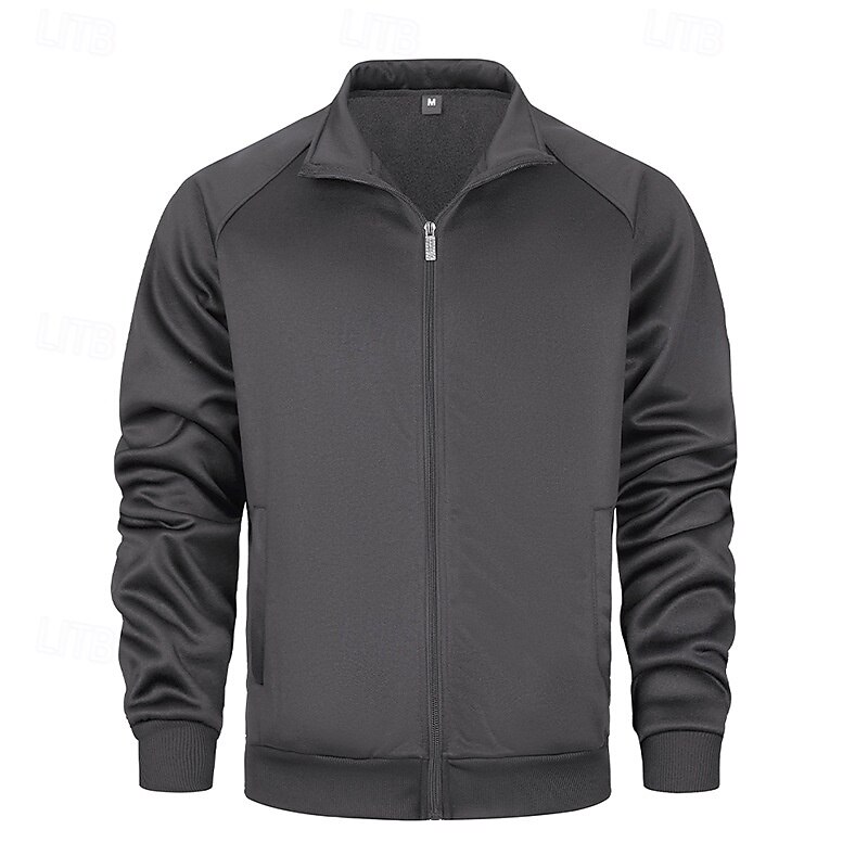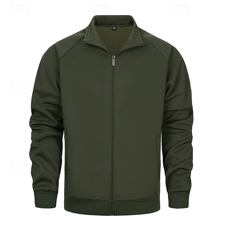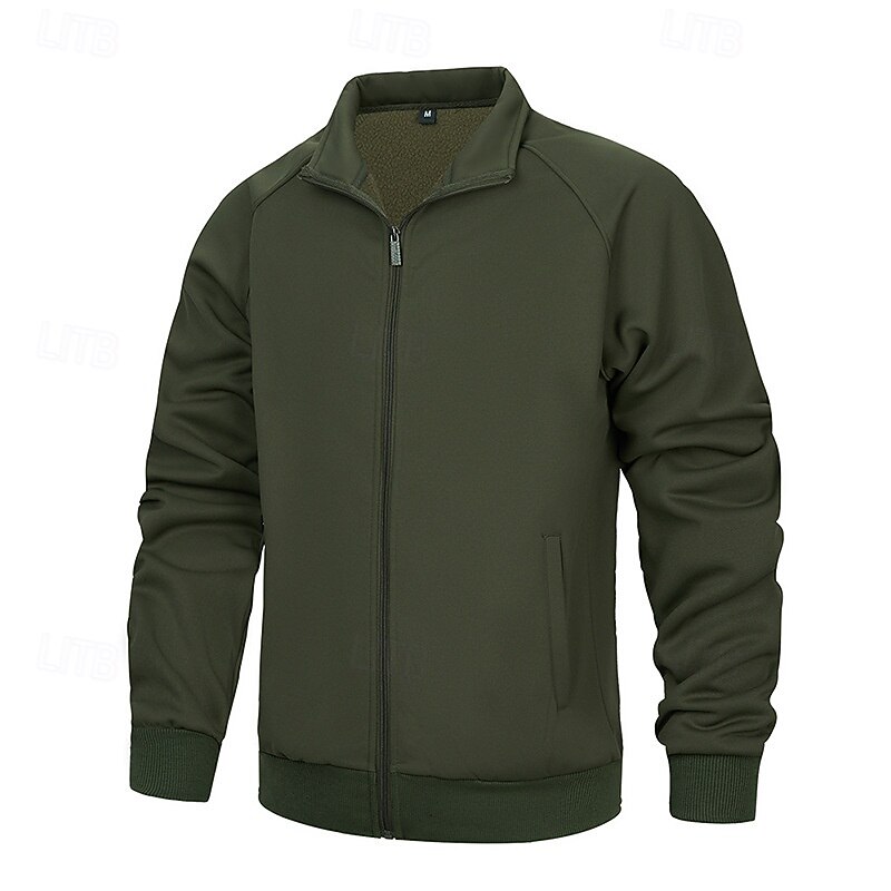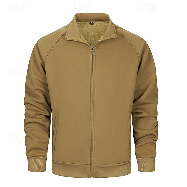 More information about Men's Fleece Jacket Casual Jacket Vacation Daily Breathability Pocket Spring Fall Plain Fashion Classic Stand Collar Regular Black Khaki Army Green Gray Jacket
