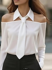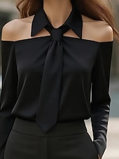 More information about Women's Shirt Elegant Dressy Satin Plain Active Stylish Long Sleeve Shirt Collar Regular Tops Holiday Going out Backless Black White Khaki Spring Fall