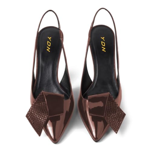 YDN Women Studded Pumps Pointed Toe Slingback Chunky Low Heels Slip On Shoes Party Prom Daily Size 4-16 US 5