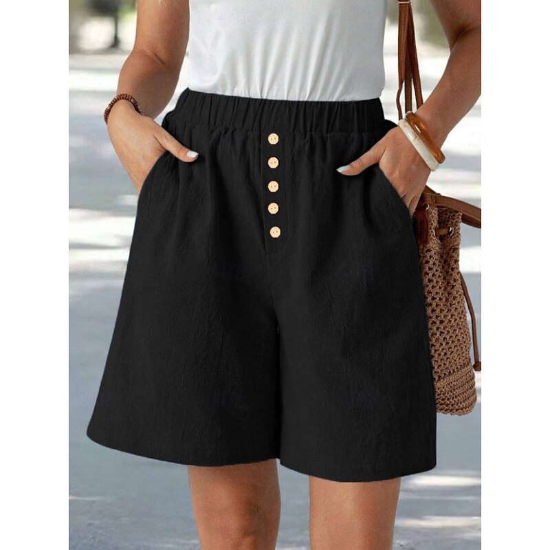 More information about Women's Chinos Shorts Vacation Fashion Basic Short High Waist Plain Pocket Drawstring Comfort Outdoor Micro-elastic Vacation Street Daily Navy-blue Black Summer Spring Loose Fit
