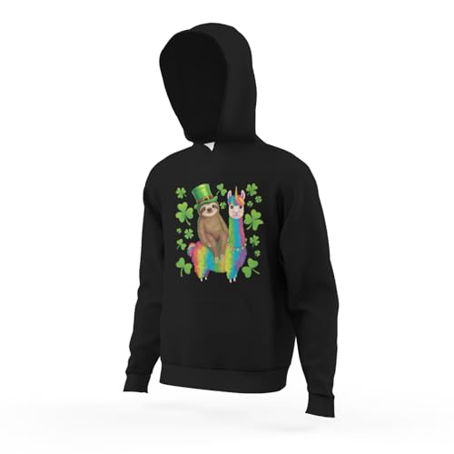 HOT ! Kids Funny St Patricks Day Sloth Riding Llama Unicorn Boys Girls Lightweight Kangaroo Pocket Fleece Hoodies
