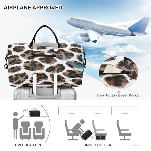 Leopard Print Travel Duffel Bag Large Capacity Weekender Bag with Toiletry Bag Detachable Shoulder Strap Travel Tote Bag for Women 6