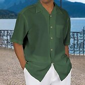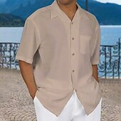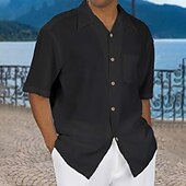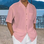 More information about Men's Shirt Summer Shirt Casual Shirt Beach Shirt Button Up Shirt Black White Pink Blue Green Short Sleeve Plain Turndown Vacation Street Front Pocket Clothing Apparel Cotton Cotton Blend Fashion