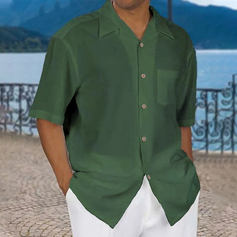 Men's Shirt Summer Shirt Casual Shirt Beach Shirt Button Up Shirt Black White Pink Blue Green Short Sleeve Plain Turndown Vacation Street Front Pocket Clothing Apparel Cotton Cotton Blend Fashion 15