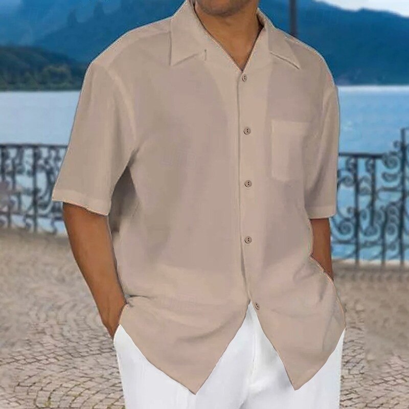 Highlights - Perfect for the summer season - Designed with short sleeves for added comfort - Specifically designed for men - Ideal for vacation or holiday activities - Features a trendy turndown neckline