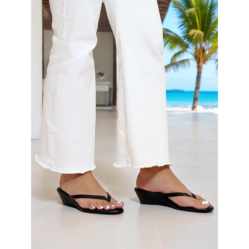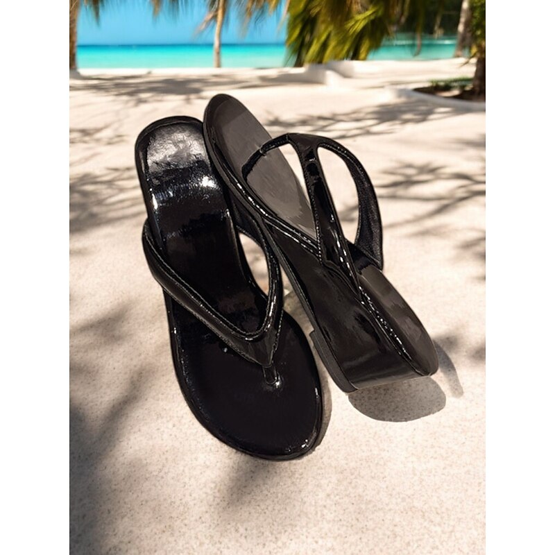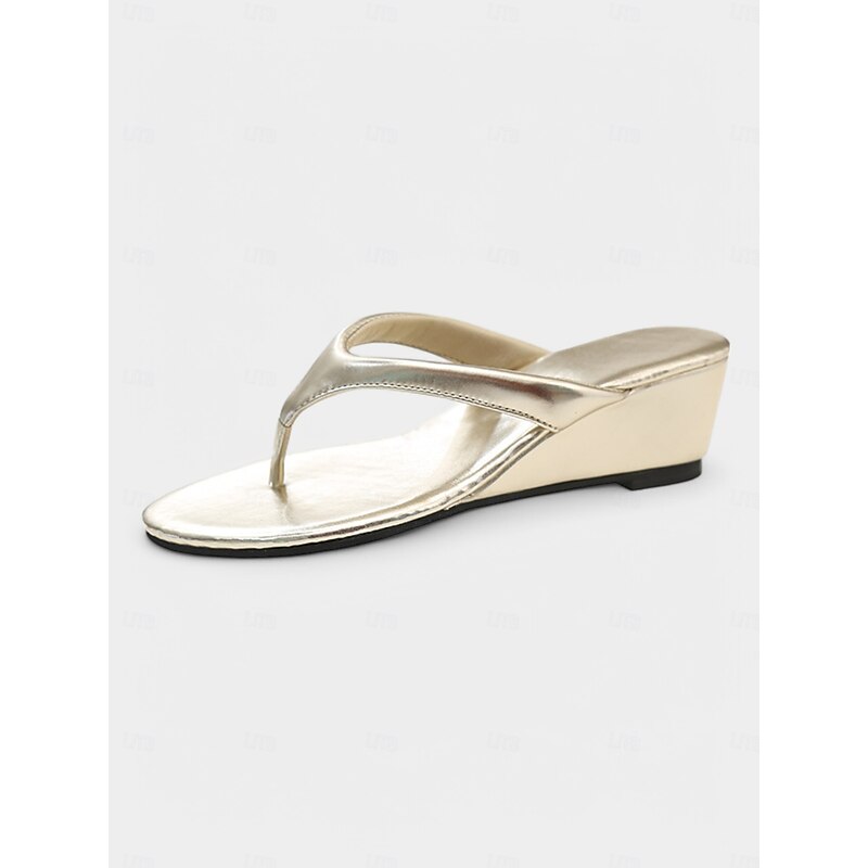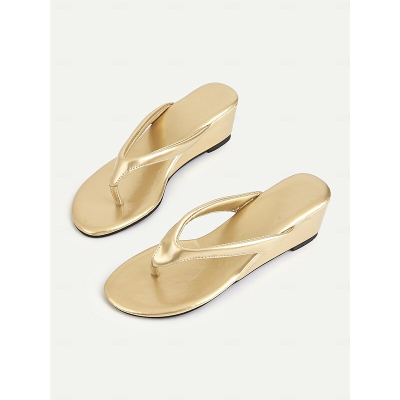 HOT ! Women's Gold Wedge Flip Flop Sandals – Shiny Metallic Beach Slides for Summer Vacation, Travel, and Casual Wear