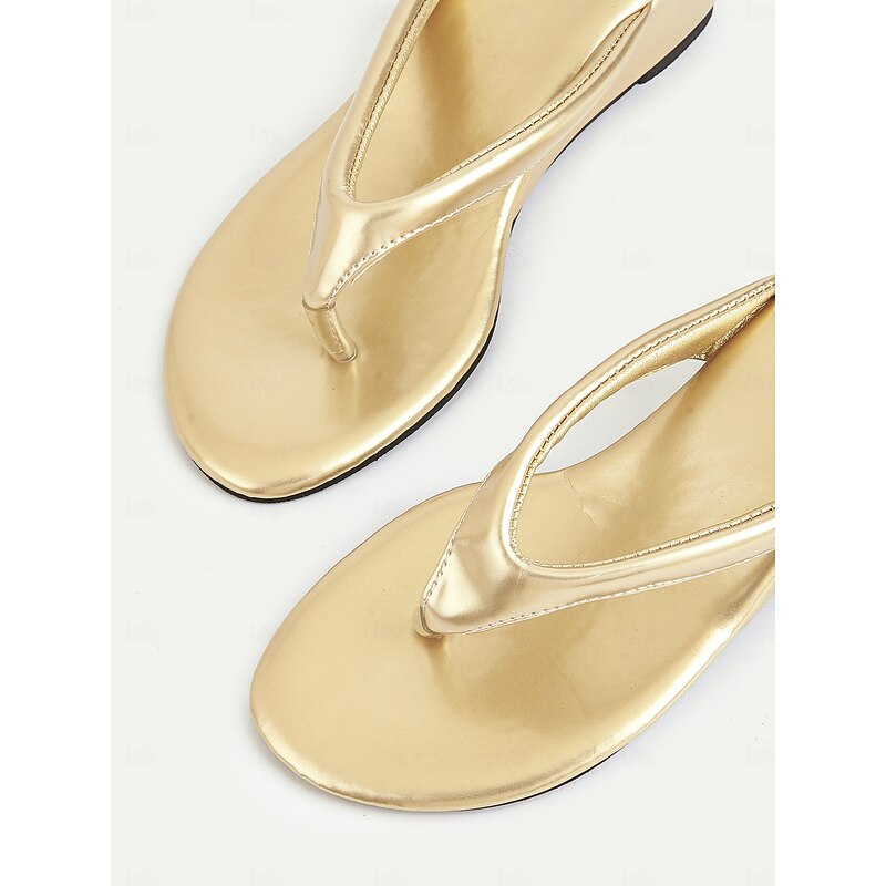 Women's Gold Wedge Flip Flop Sandals – Shiny Metallic Beach Slides for Summer Vacation, Travel, and Casual Wear 17