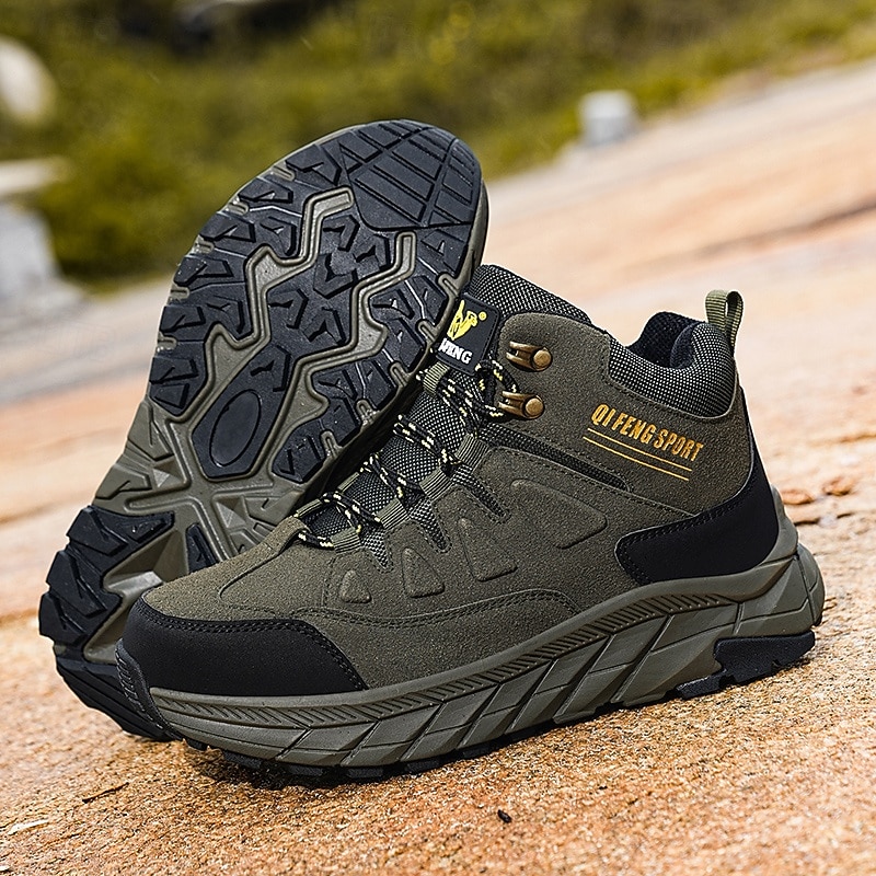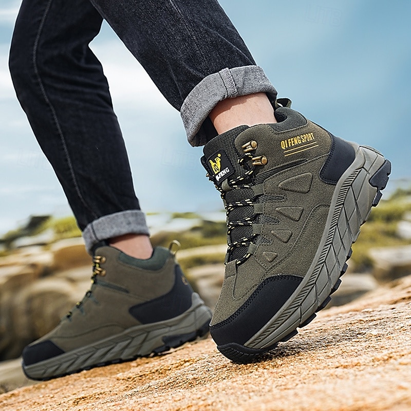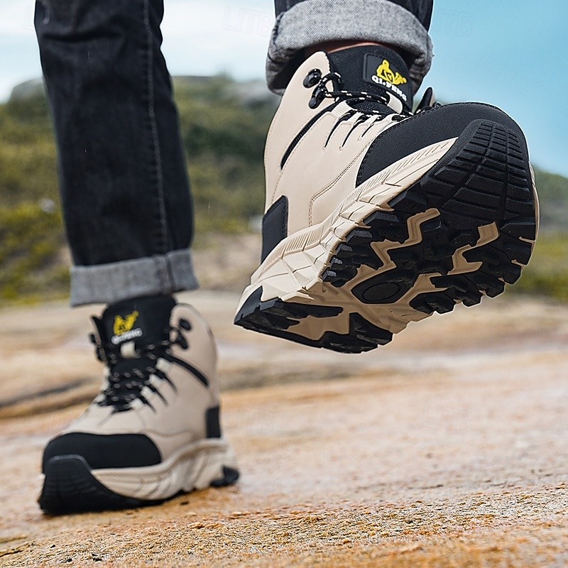 HOT ! Men's High Top Hiking Boots with Shock-Absorbing Sole, Breathable Outdoor Trekking Shoes for Mountain Climbing, Walking Trails and Camping Trips