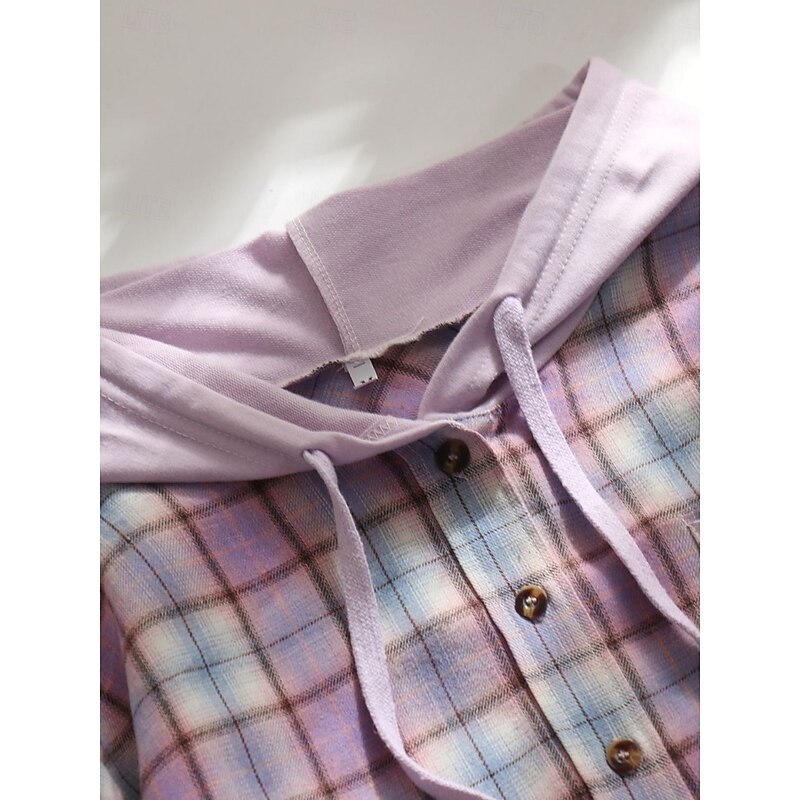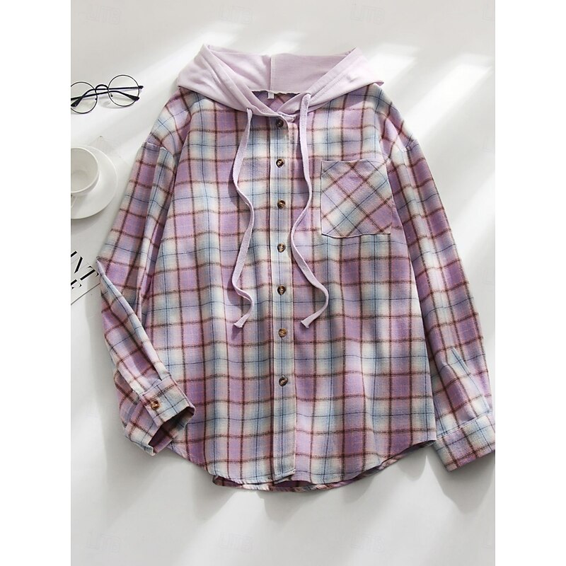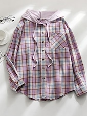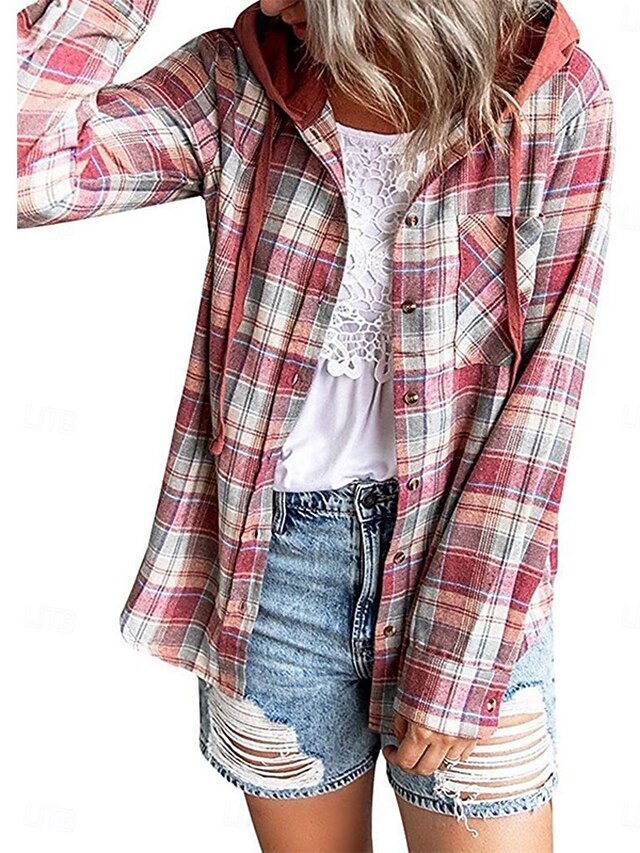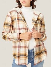 More information about Women's Casual Jacket Shacket Comfortable Breathable Pocket Buttons Print Casual Plaid Vacation Street Daily Wear Going out Single Breasted Regular Hoodie Regular Fit Long Sleeve Outerwear Black