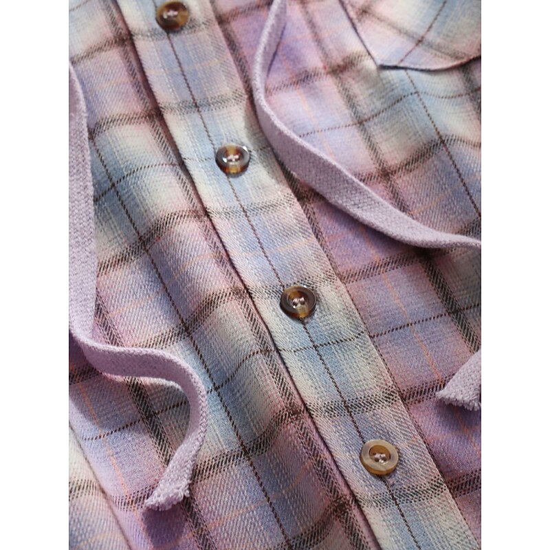 Women's Casual Jacket Shacket Comfortable Breathable Pocket Buttons Print Casual Plaid Vacation Street Daily Wear Going out Single Breasted Regular Hoodie Regular Fit Long Sleeve Outerwear Black 7