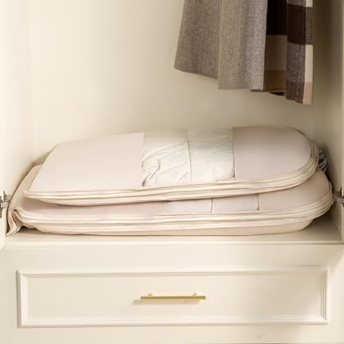 • SPACE SAVER CLOSET ORGANIZERS WITH SELF COMPRESSION ZIPPER:The self-compression zipper allows you to squeeze out air, reducing the bulk of stored items. This helps fit more clothes in limited space and keeps them neatly compressed.
