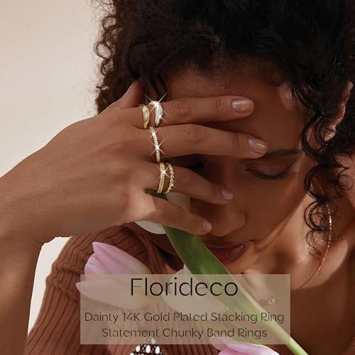 HOT ! Florideco Gold Stackable Rings for Women Non Tarnish Dainty 14K Gold Plated Stacking Cubic Zirconia Thumb Ring Set Trendy Statement Chunky Band Rings Promise Engagement Rings Size 6-10