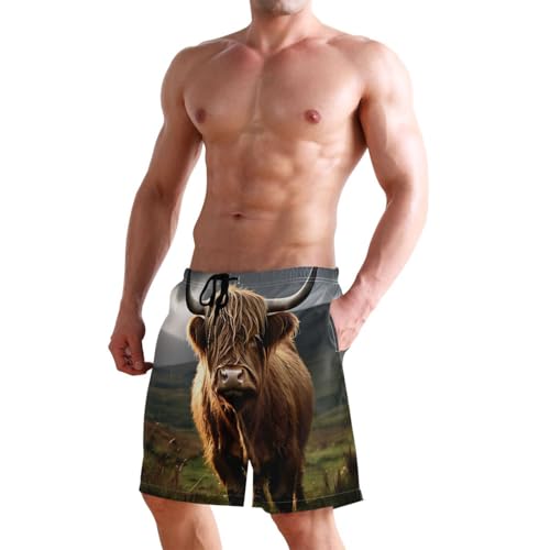 Cow Long Horns Field Men's Swim Trunks Quick-Dry Bathing Suit Swimming Board Shorts S 3