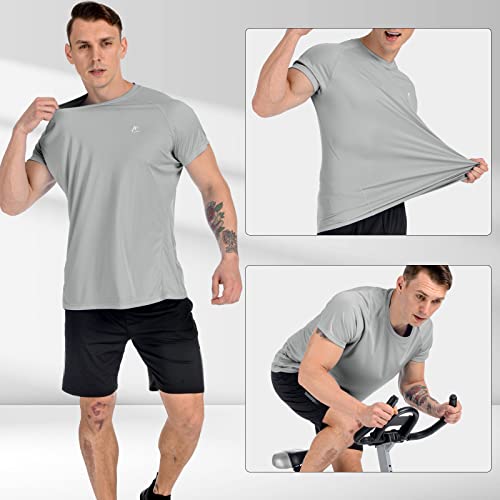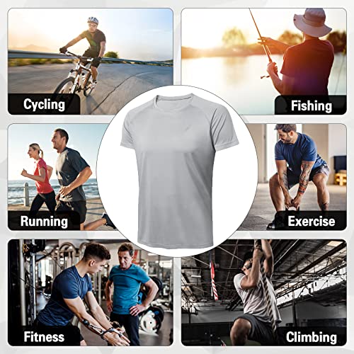 Men's UPF 50+ Sun Protection Shirts, Short Sleeve Swim Tee Shirt expedient Dry Rash Guard Workout Athletic Hiking Running T Shirt Grey
