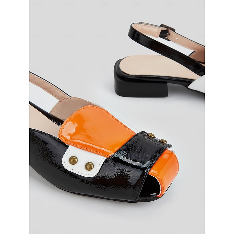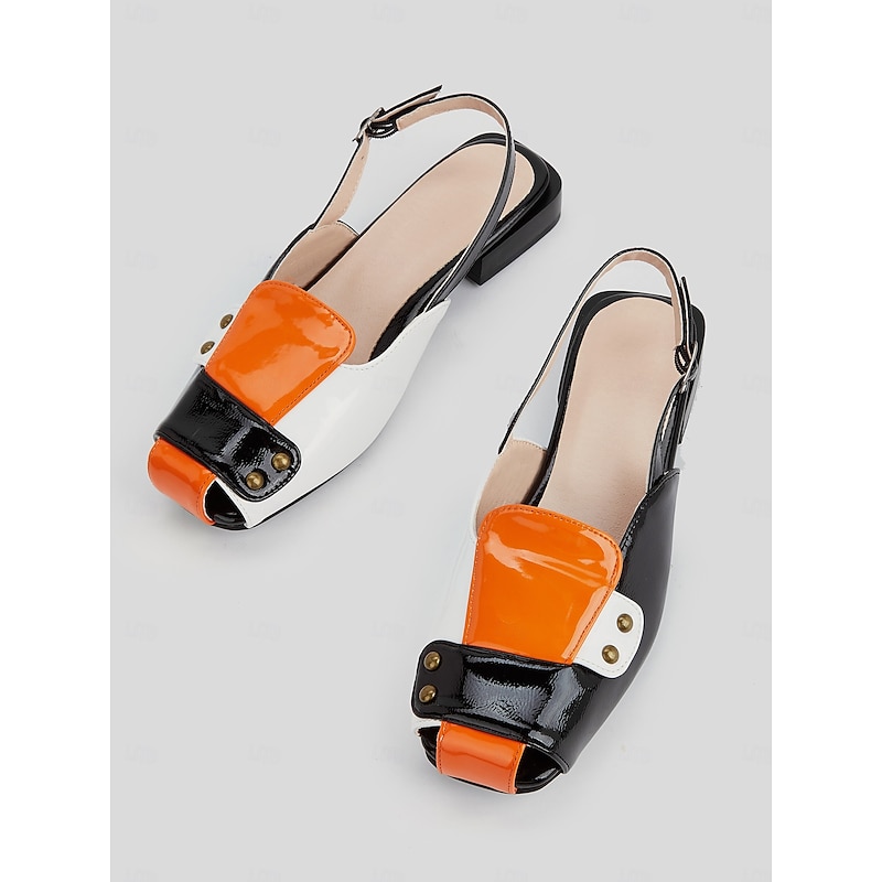 Women's Colorblock Peep-Toe Slingback Flats – Retro Low Heel Shoes for Daily Work and Urban Commuting 1