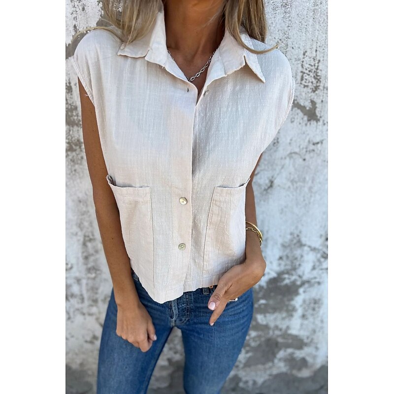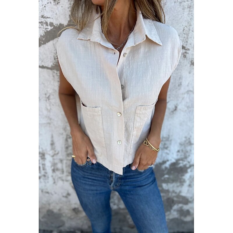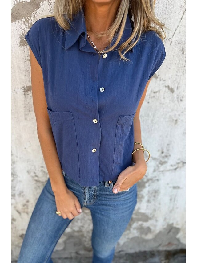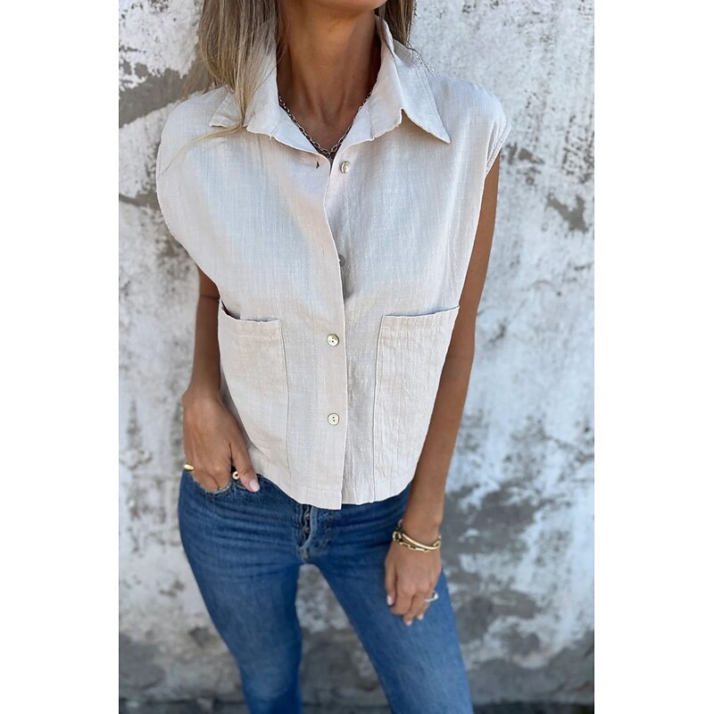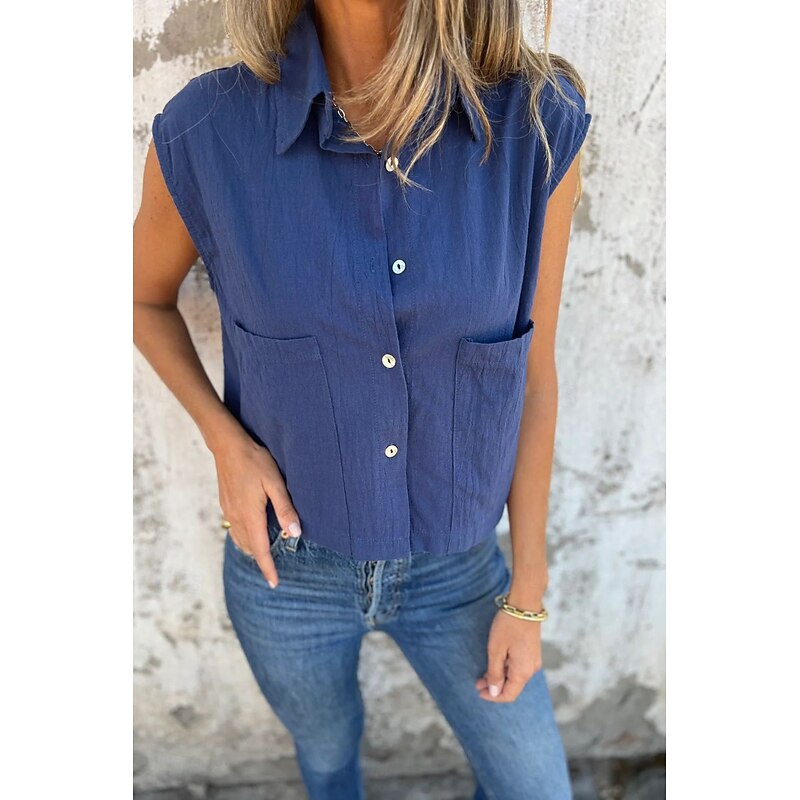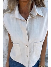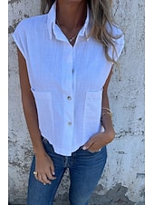 More information about Women's Shirt Cotton Linen Shirts Linen Shirt Button Up Plain Stylish Modern Sleeveless Shirt Collar Regular Tops Daily Holiday Going out Buttons White Navy Blue Apricot Summer
