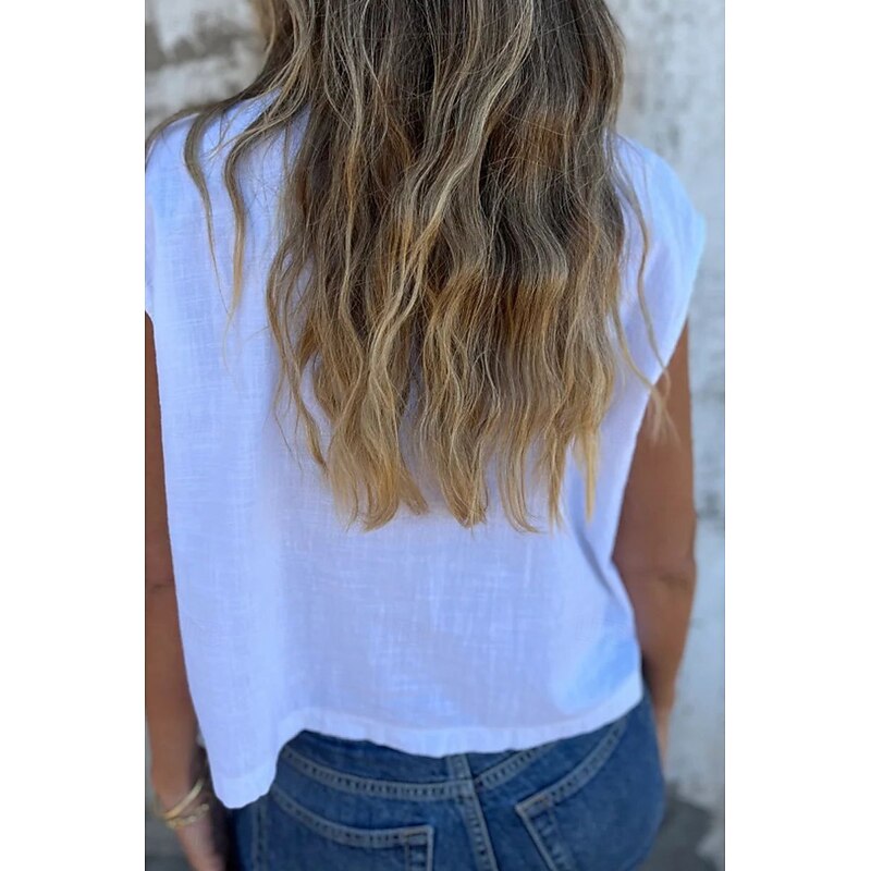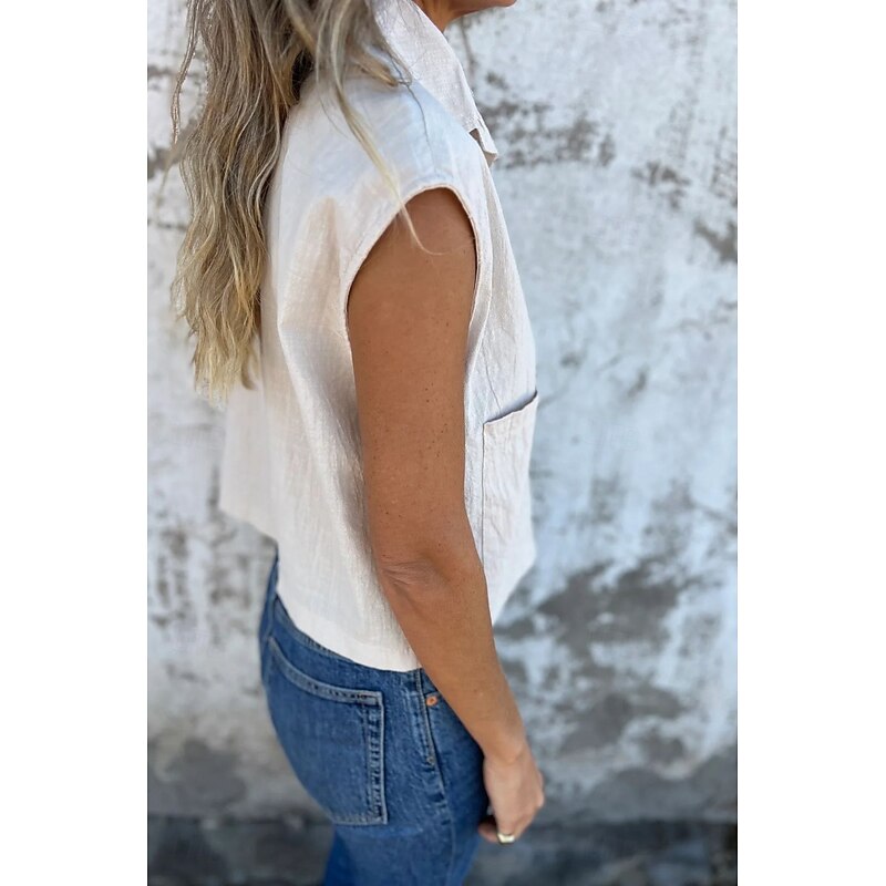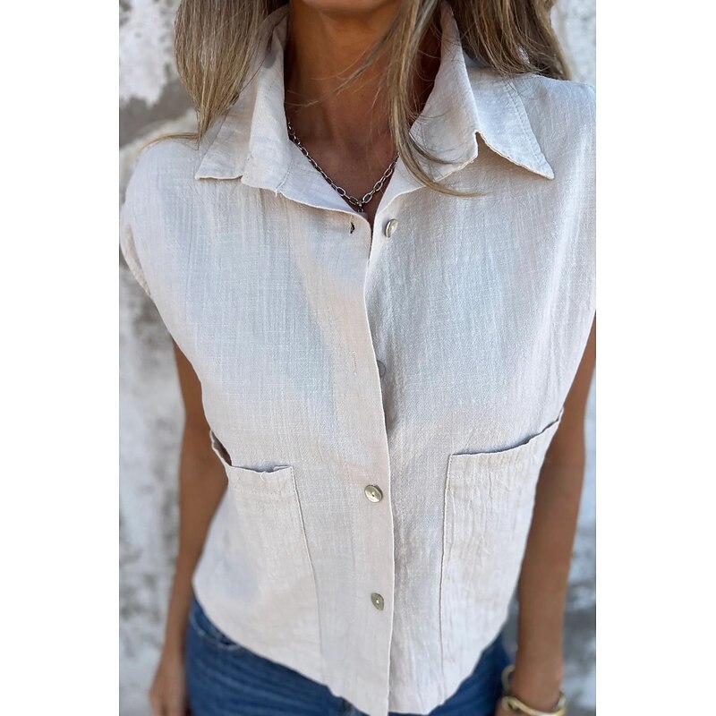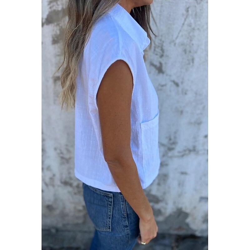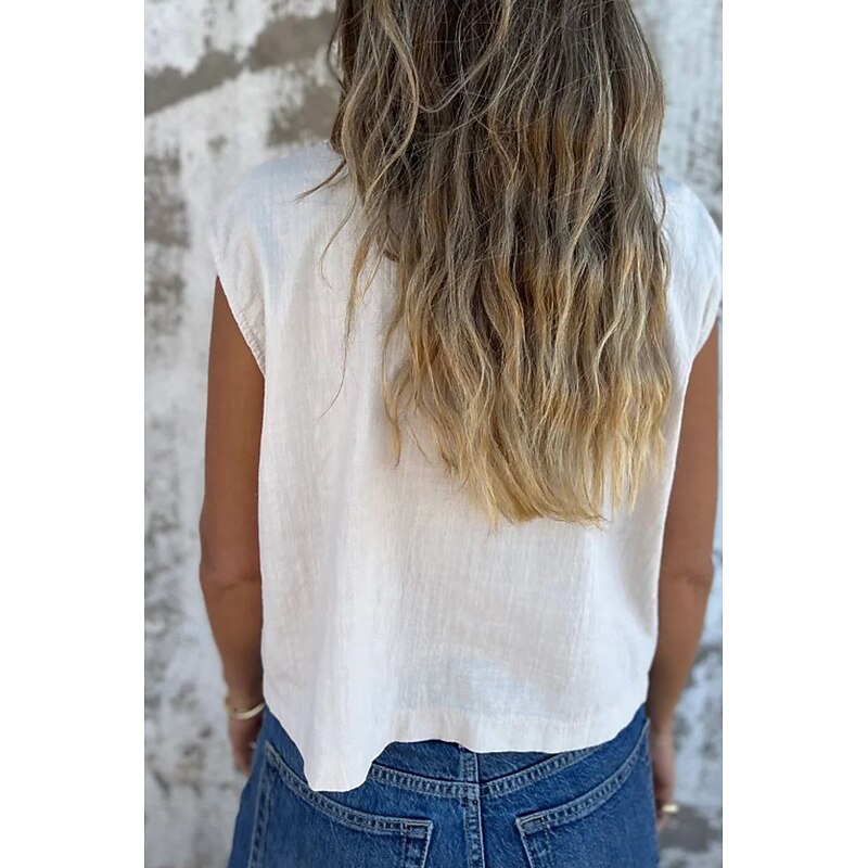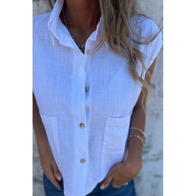 More information about Women's Shirt Cotton Linen Shirts Linen Shirt Button Up Plain Stylish Modern Sleeveless Shirt Collar Regular Tops Daily Holiday Going out Buttons White Navy Blue Apricot Summer