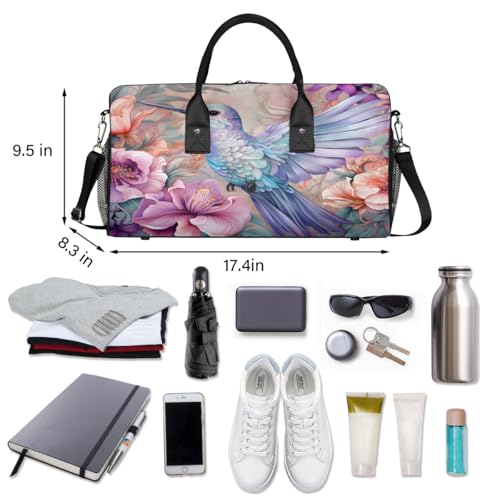 HOT ! Hummingbird Flowers Travel Duffle Bag for Women Men Foldable Waterproof Weekender Bag Carry on Tote for Overnight Sports Gym Vintage Rustic Farmhouse