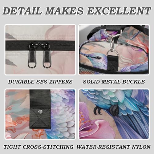 Hummingbird Flowers Travel Duffle Bag for Women Men Foldable Waterproof Weekender Bag Carry on Tote for Overnight Sports Gym Vintage Rustic Farmhouse 4