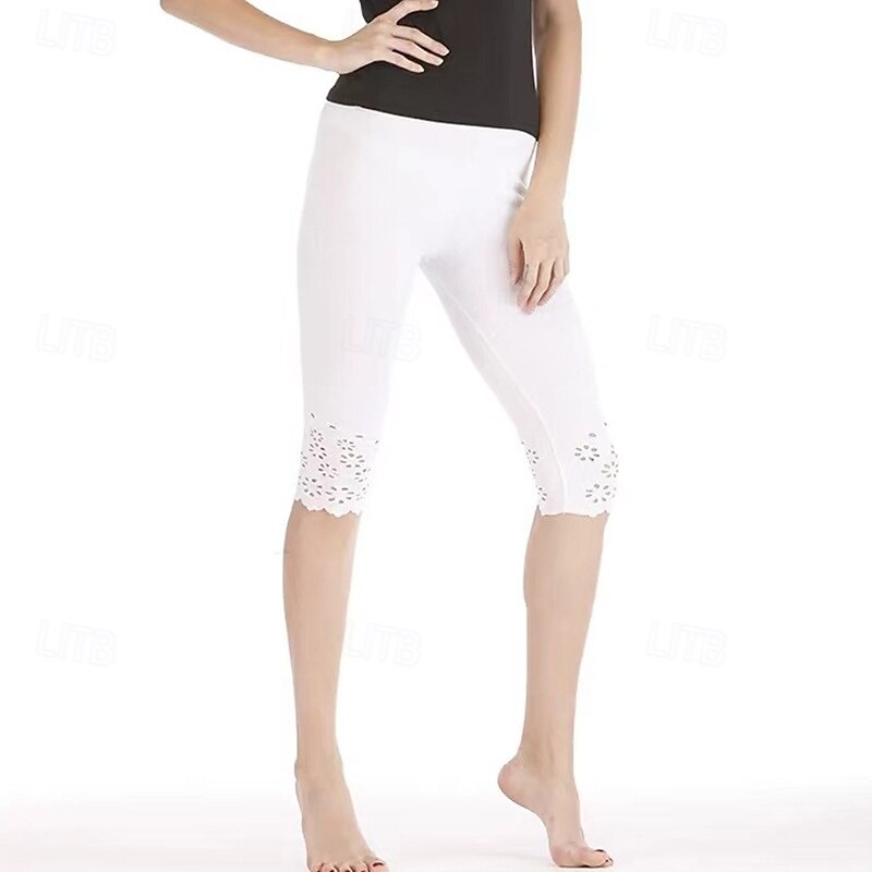 More information about Women's Casual Cropped Trousers Hollow High Waist Athletic Pilates Running Bottoms Solid Color Black White Grey Sports Activewear Slim