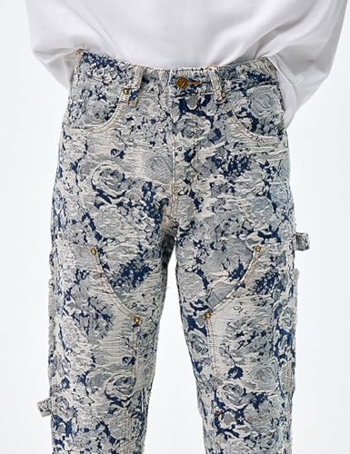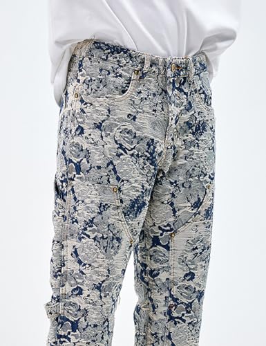 sizzling ! Men Jacquard Weave Distressed Ripped Denim Jeans