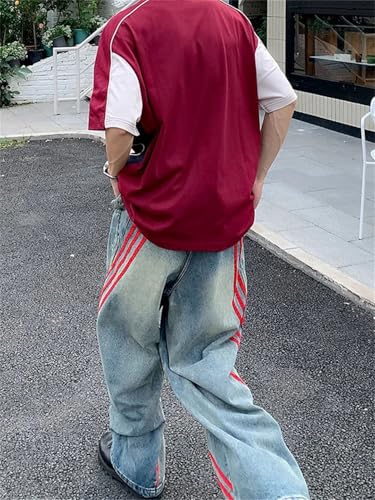 Men Striped Vintage Blue Baggy Jeans Pants Old Loose Denim Trousers 5