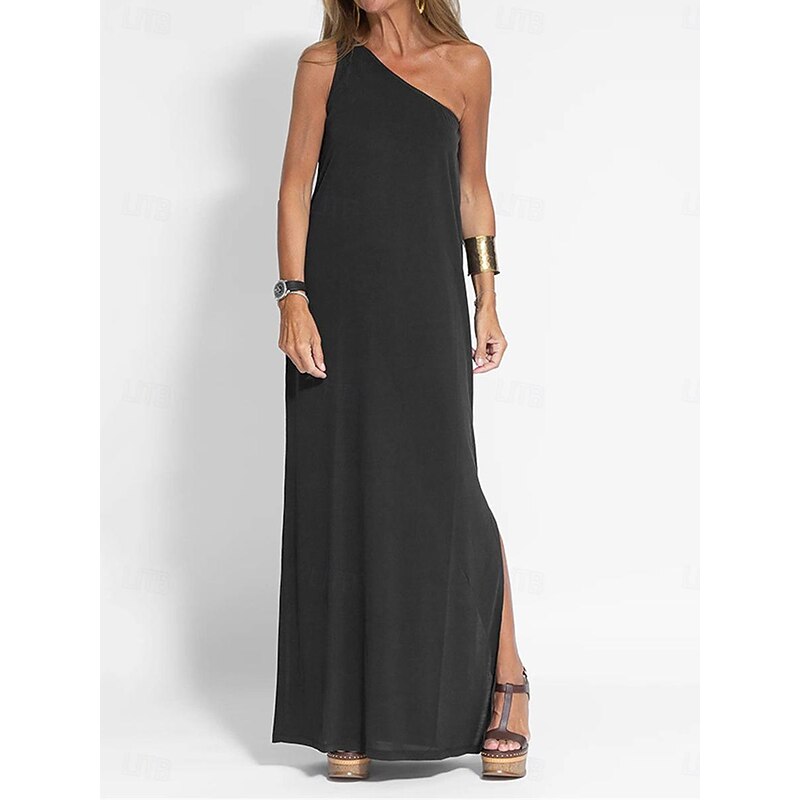 Women's Maxi Dress Black Dress Casual Dress Cocktail Dress Formal Dress Streetwear Maxi Casual Vacation Street Holiday Regular Fit Sleeveless One Shoulder Black Yellow Gray Summer 1
