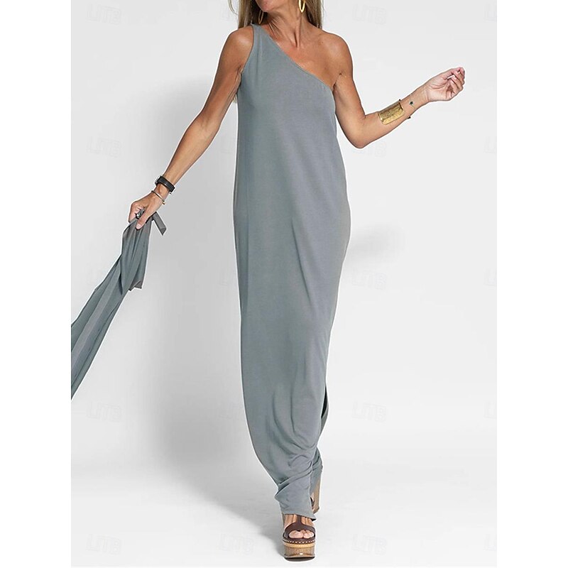 HOT ! Women's Maxi Dress Black Dress Casual Dress Cocktail Dress Formal Dress Streetwear Maxi Casual Vacation Street Holiday Regular Fit Sleeveless One Shoulder Black Yellow Gray Summer