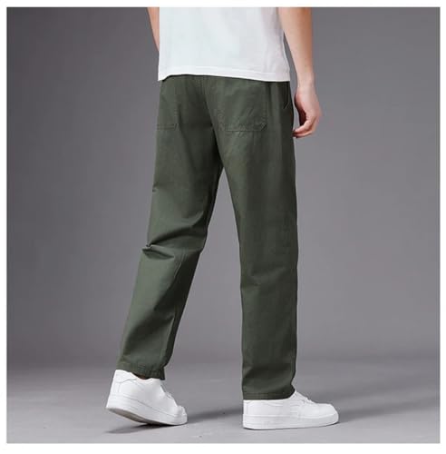 Casual Pants Men Elastic Waist Straight Leg Fit Trousers Male Loose Cotton Work Wear Pant 5