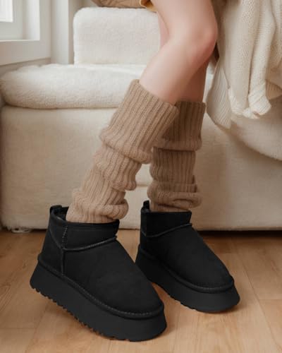 Platform Mini Boots for Women Suede Upper Winter Boots Warm Fur Fleece Lined Anti-Slip Sole Short Ankle Snow Boots for Indoor & Outdoor 1