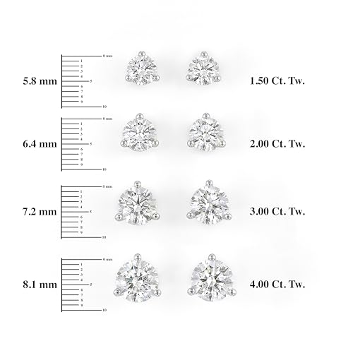 More information about IGI Certified 1.50 to 4.00 Carat Lab Grown Diamond Round Stud Earrings for Women I 14k White Gold Earrings for Her (I-J, VS1-VS2, cttw) 3-Prong Martini Set Diamond I Push Back Studs