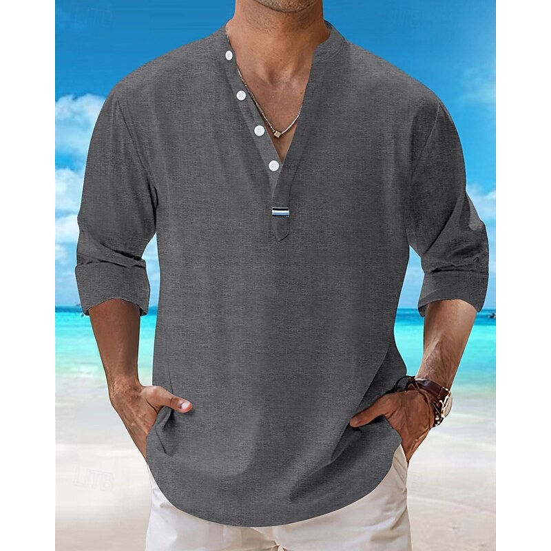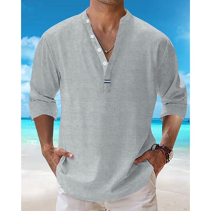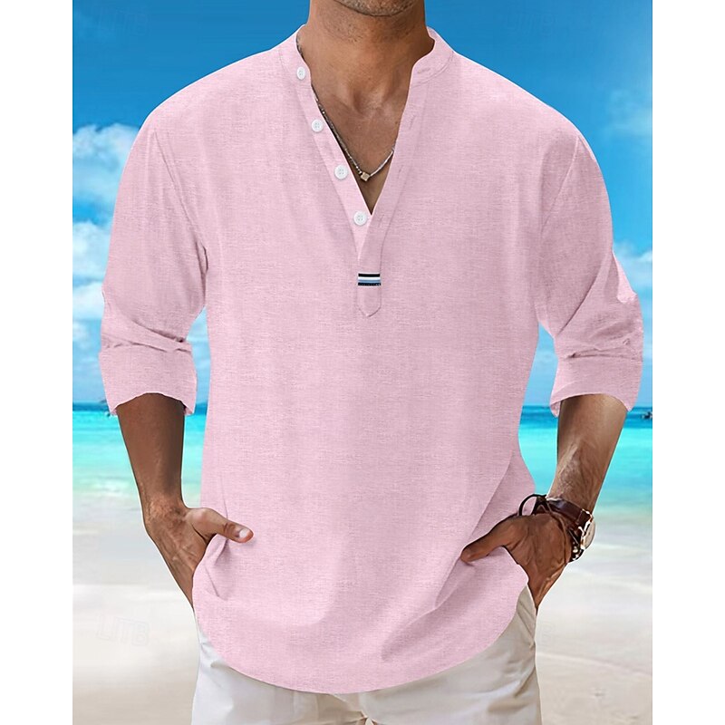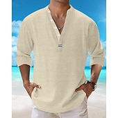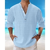 More information about Men's Shirt Popover Shirt Summer Shirt Casual Shirt Beach Shirt Black White Pink Navy Blue Sky Blue Long Sleeve Plain Lapel Vacation Hawaiian Clothing Apparel Cotton Blend Fashion Casual Comfortable